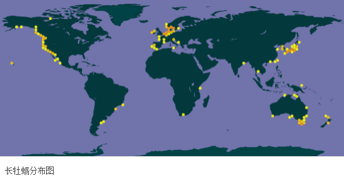长牡蛎原产日本,天然苗种丰富,北美于20世纪30年代开始从日本引种,在加拿大和美国华盛顿州广泛养殖,并成为当地海区自然种群。以后,法国、韩国和中国台湾省也先后引种。该贝现已成为世界牡蛎养殖的主要品种。1979年6月和1980年4月,浙江省水产厅先后2次从日本日鲁渔业株式会社、东京丸一商社和日本宫城县引进牡蛎苗,由浙江省海洋水产研究所温州分所在乐清海湾清江海区试养。引进的苗种总量为1535万颗,引进稚贝平均壳高1.62厘米,平均重0.98克。