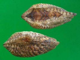 贝壳大型,似不规则四边形,偶尔等壳。壳表有明显的放射肋,有棕色斑纹。