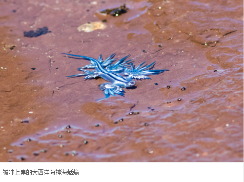 由于该种的栖息方式是漂浮于海面,因此有时会在沙滩上发现被冲上岸的大西洋海神海蛞蝓。