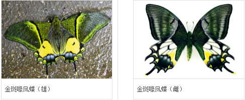 一年生活两代、成虫活动时间短、交配繁殖受气候影响很大等相当有限的资料。加之雌、雄性比相差悬殊(1:50~200),雌性的金斑喙凤蝶很难见到。