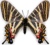 太白虎凤蝶学名:Luehdorfia taibai)是鳞翅目凤蝶科虎凤蝶属的蝴蝶种类,极似中华虎凤蝶,不同处是前翅上如虎斑的粗黑条纹比中华虎凤蝶更宽,后翅尾突长达10mm。 翅膀基色为黄色,前翅外缘有宽的黑带,翅面有一些黑色短纹,犹如虎皮。后翅外缘波形,尾突长,外缘黑带上镶有弯月形黄斑,最里面有一列弯月形红斑。喜欢生活在光线较强而湿度不太大的林缘地带。飞翔能力不强。经常寻访的蜜源植物有蒲公英及其他堇科植物。一生要经历卵、幼虫、蛹、成虫等四个阶段。产卵于芸香科、樟科、伞形花科及马兜铃科等植物上。分布于中国秦岭山脉的部分地区。