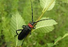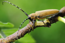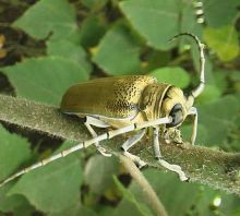天牛是多食亚目天牛科昆虫的总称,咀嚼式口器,有很长的触角,常常超过身体的长度,全世界约有超过20,000种。有一些种类属于害虫,其幼虫生活于木材中,可能对树或建筑物造成危害。