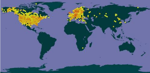 分布于欧洲,北美洲,蒙古以及中国国新疆青河县。