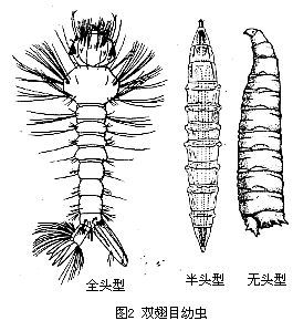 幼虫大部系陆栖,但长角亚目的大部、短角亚目的虻科和水虻科、芒角亚目的水蝇科等幼虫多系水栖,大多数生活于淡水中,也有栖息于海水或盐水中。生长繁殖