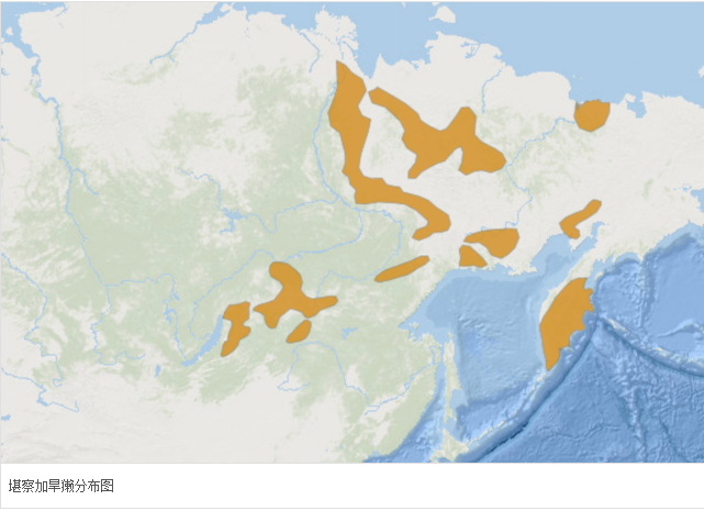 分布于俄罗斯西伯利亚东部山区(海拔1900米)和北极苔原,分布范围由三个孤立的区域组成:贝加尔湖地区、维尔霍扬斯科和科里姆斯基高地(Verkhoyanskoe and Kolymskoe Highlands)以及堪察加半岛。