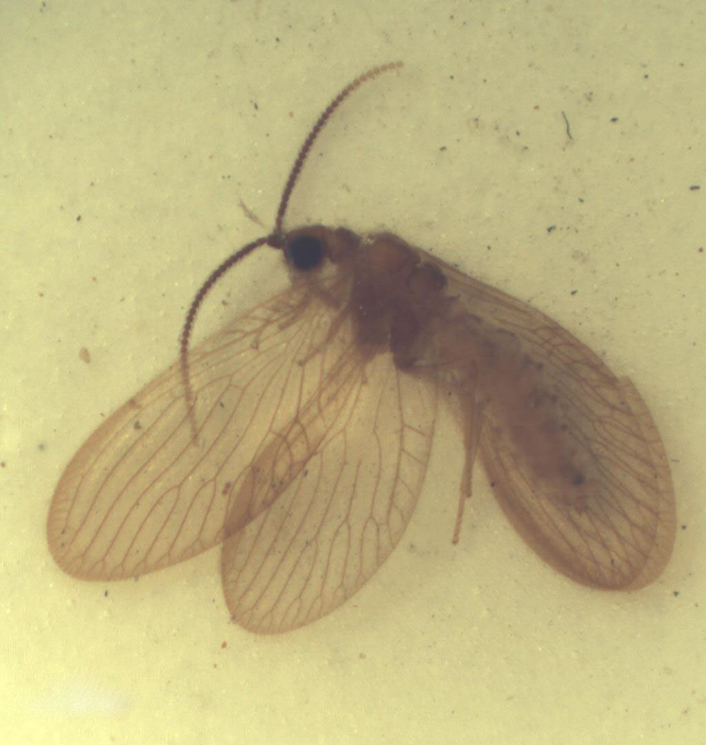 水蛉科(Sisyridae)寄生性昆虫的统称。成虫烟褐色。卵块附于水面或水中的丝网上。幼虫水生,以淡水海绵及藻类为食。幼虫成熟後离水,织一双重壁的茧而化蛹。分布于世界各地有淡水海绵的地方。