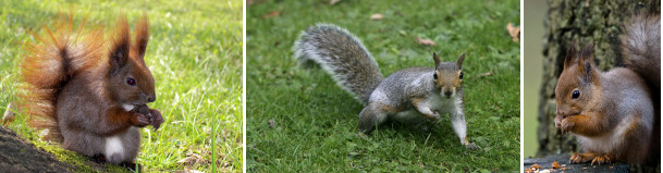 松鼠,隶属啮齿目松鼠科,泛指一大类尾巴上披有蓬松长毛的啮齿类动物,现存约有58属285种,分布遍及南极以外的各大洲(在大洋洲为引入种)。