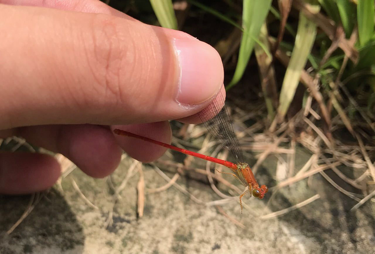 体长35-41mm,雄虫复眼绿色,头部红色,胸部橙黄色,腹部橙色至橙红色,雌虫胸部黄绿色或黄褐色。生活于平地至低海拔之池塘、沟渠---等静水环境。分布普遍,成虫几乎全年可见,很容易观察。