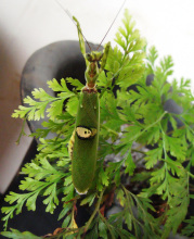 较为常见的螳螂种类,长相奇特,非常引人注意, 头顶略隆起。