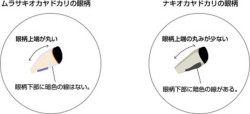 紫陆的眼柄上部在靠近根部有一个弯曲,与灰白显著不同(灰白是直的;下图左为紫陆,右为灰白)
