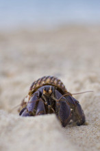 紫陆寄居蟹,学名C.purpureus,是一种产自日本的陆寄居蟹。该种与灰白寄居蟹极其相似。紫陆寄居蟹的体色颇为多变,浅蓝至深紫色都有发现。只在初夏至初秋时的夜间出现在海滨,其余时间它们都会躲在靠海岸的森林里。虽然陆寄居蟹已经是高度陆化的品种,但是繁殖依旧需要海洋环境。