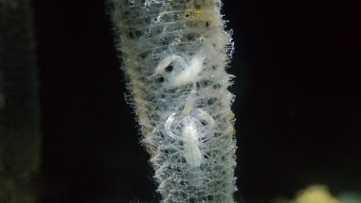 当俪虾还幼小的时候,它们就从一种叫偕老同穴的海绵身体的水孔里游进海绵体内,从流进海绵体内的海水中摄取食物。俪虾在海绵体内逐渐长大,已无法再从水孔中游出去,只能终生被“囚禁”在海绵体内,与海绵共栖终生,生死同穴。