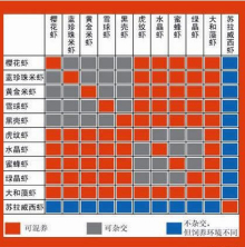 黑壳虾会与一些观赏虾类如樱花虾、极火虾、雪球虾、黄金米虾等进行杂交,其实樱花虾之类的就是从黑壳虾提纯而来的,野生的黑壳虾也会出现类似于樱花虾、雪球虾体色的个体,所以从本质上说它们是同一种虾的不同颜色表现而已,如果与黑壳虾杂交,后代将会失去原本已被提纯稳定的颜色,为了保证观赏虾后代的质量请不要将它们与黑壳虾混养,这几种虾之间的混养也最好禁止,因为杂交后代非常有可能返祖为普通的黑壳虾。另:黑壳虾无法同蜜蜂虾、虎纹虾、水晶虾杂交,所以可以混养。