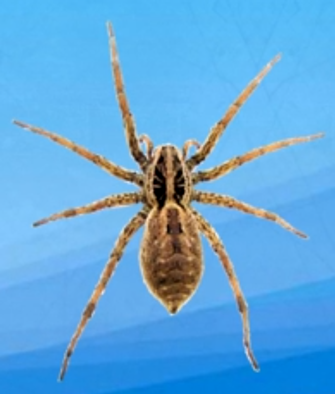 胸甲心形,黑色,正中有两个椭圆形黄斑。螯肢杏黄色,前齿堤4齿,以第3齿为最大,后齿堤3齿,第3齿也最大并与前齿堤之第3齿对峙。触肢杏黄色,跗节多黑刺。颚叶黑褐色,边缘黄白色,并具褐色毛丛,下唇黑褐色,宽大于长。步足黄褐色,各节远端有黑色环纹。