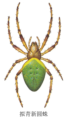 拟青新圆蛛(Neoscona scylloides (Boes. et Str., 1906))是蜘蛛目圆蛛科新圆蛛属的一种蜘蛛。分布于湖北、四川、山西、安徽、浙江、湖南、台湾、山东等。寄主危害作物有水稻、棉花、果树等。