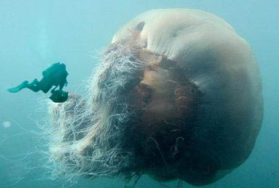 比僧帽水母还厉害的是北极霞水母,它的伞盖,周围的直径为两米,触手有1200多条,一条触手就有四十米长。如果说把所有的触手全部张开的话,就是撒下了天罗地网。北极霞水母只分布在北极的海域,人迹稀少的北极海域。像北极霞水母,如果碰到它,几个小时之内如果不及时治疗,生命是难保的。