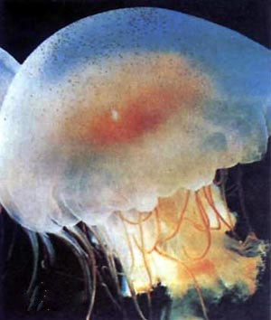伞径为350—540mm,伞部为半球形,伞部中央较肥厚,结实,伞缘较薄。8个感觉器的内窝处有放射肋,平衡棍末端具有褐色素。16条辐管都延伸至伞缘。各辐管侧分枝彼此相连构成复杂的网状管。口腕8个,3翼型,具有许多末端膨大的槌状附属物。有8对肩板,在肩板上有许多丝状附属物。生殖下穴4个。