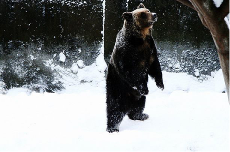 日本棕熊(学名:Ursus arctos yesoensis),头大而圆,体形健硕,肩背隆起。被毛粗密,冬季可达10厘米;在棕熊的背部有一块鼓起来的肌肉,当它们挖洞时,那块肌肉便给予棕熊前肢的力量。它们有一双有力的熊掌,有1.5米长,一掌拍下去足以杀死一头和自身一样大的马鹿。它们的爪子不能伸缩,不是很灵活,但那巨大的力量还是致命的。