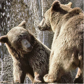 生活习性:它们的爪子不能伸缩,不是很灵活,但那巨大的力量还是致命的。栖息范围较广,一般独居。植物性一般食物占了60~90%,包括各种根茎、块茎、草料、谷物及果实等,动物性食物如昆虫、啮齿类、有蹄类、鱼和腐肉等。冬眠。跑快时时速可达56公里/时。棕熊不仅快,而且很有耐力。可以以最快的速度跑几十分钟。母棕熊在冬眠的洞穴中产仔,每胎1-4只,幼熊出生时非常小,重约500克。出蛰后母熊经常带着幼熊活动,别看它们平时行动迟缓,熊宝宝若遇到危险,母熊会十分迅捷地挺身而出。