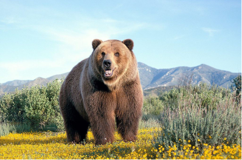 外形特征:阿特拉斯棕熊是熊科累中属于棕熊中体型较小的亚种,只有100多千克重,比棕熊中最小的叙利亚棕熊(不足90千克)稍大些,比美洲黑熊略小些。是唯一生活在非洲的熊类,曾被当作独立的物种。该亚种有一张很短的脸,口吻和爪比美洲黑熊短,身材粗壮。有蓬松的黑棕色皮毛,有的喉咙处有白色的皮毛,背部黑褐色,胸腹部橙色或红褐色,毛皮为100-130毫米长,体型很壮硕结实。