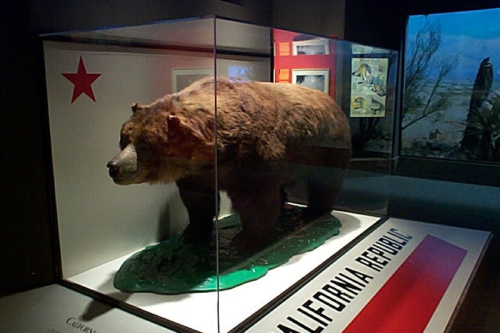 美国加州灰熊,是一种非常强大的食肉动物,在当时的加利福尼亚州沿海的山坡和山谷蓬勃发展。1848年这个地区发现了金矿,大批的人类涌入并定居,他们的涌进给加利福尼亚州灰熊造成了空前的灾难。1922年最后一只加州灰熊被加利福尼亚州弗雷斯诺县牧场主枪杀了。