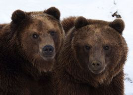 生活习性:堪察加棕熊嗅觉灵敏,奔跑速度也相当快,是杂食动物,食物包括野果、青草、昆虫、鱼、鼠类、蜂蜜、狍、鹿、山羊和野猪的幼仔也常常成为它们的食物。在夏季,堪察加棕熊吃蓝莓,岩高兰,驼背鲑鱼和鲑鳟鱼。到了秋天,它们吃螺母松和花楸树的坚果及鱼。在食物短缺和饥饿时,也吃死鱼或海洋哺乳动物、浆果和禾草植物。棕熊是相当好斗的动物,特别是在保护领地和食物的时候。为了保护食物,它们会赶走狼群和山狮,也会打跑侵入它们领地的其他熊。大多数的打斗仍然集中在交配季节。堪察加棕熊栖息在堪察加半岛的密林深处,夏季在海拔较高的山上,春秋两季在海拔较低处,冬季则多在洞中冬眠。密集而矮壮的西伯利亚红松洼地,以及广阔的浆果冻原,生长茂密植被的滨海苔草草甸,都是该物种的理想栖息地。通常在秋天,堪察加棕熊会在堪察加半岛上海拔较高的朝南的斜坡上挖掘窝点。当寒冬来临时,堪察加棕熊就开始了冬眠。它们在每年的10月底11月初进入冬眠,直到次年的三四月,它们在冬眠时处于假睡状态。
