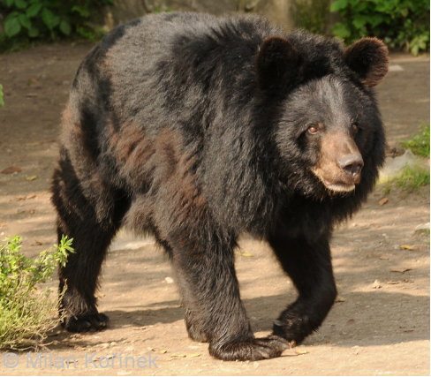 黑熊指名亚种(学名:Ursus thibetanus thibetanus)是食肉目熊科的哺乳动物。身体粗壮。头阔,吻较短。除胸部具有白色或黄色新月形斑纹外,全身被著富有光泽的漆黑色毛;鼻面部棕褐色或赭色。颈侧部毛较长,成毛丛状;胸部毛最短;前足腕垫发达,与掌垫相连;前后肢趾呈黑色。通常以四肢行走,掌行式,但是也能用后腿站起。擅长上树和游泳。喜欢在海拔1000到3000米的山林居住,到了冬天就迁移到低海拔地区。杂食性,春天以山毛榉等的新芽为食,夏天主要以蚂蚁、蜜蜂等昆虫为食,秋天主要橡树、栗子等果实为食。分布于阿富汗、中国、印度、印度支那、韩国、尼泊尔、泰国和俄罗斯亚。