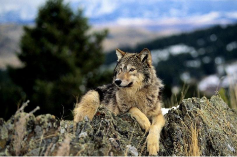 相关知识:狼是群居性极高的物种。一群狼的数量大约在5到12只之间,在冬天寒冷的时候最多可到40只左右,通常由一对优势对偶领导。狼群有领域性,且通常也都是其活动范围,群内个体数量若增加,领域范围会缩小。群之间的领域范围不重叠,会以嚎声向其他群宣告范围。通常群体捕杀大型猎物。幼狼成长后,会留在群内照顾弟妹,也可能