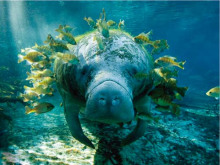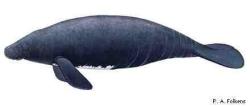 亚马逊海牛属哺乳纲海牛目海牛科。长3—4.5米。颈椎6枚。前肢呈鳍状,有残留的指甲状构造。后肢退化,尾圆形。成体无毛,仅头部保存稀疏硬毛和触毛,皮厚,灰黑色,有很深的皱纹。吻端尖,从吻端至颧弧后端呈三角形。枕骨大孔椭圆形,下颌明显弯曲。栖于浅海,或上溯河湖中,以海藻或其他水生植物为食。
