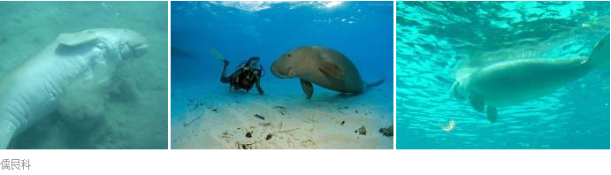 儒艮科Dudongidae是生活于印度-太平洋水域的海牛类,其尾鳍为似鲸类的叉型,对水的盐分要求较高而对水温要求略低。儒艮科现存仅儒艮Dugong dugon一种,分布较广泛,从非洲东海岸直到西太平洋一带都能见到,北可到琉求群岛和我国广东省、台湾省海域,南到澳大利亚新南威尔士州南部。过去还曾有另一种大儒艮Hydrodamalis stelleri,又称斯氏海牛、无齿海牛,原分布于白令海,是仅有的分布于寒冷水域的海牛,体型巨大,已于1854年被捕杀灭绝。