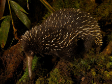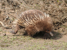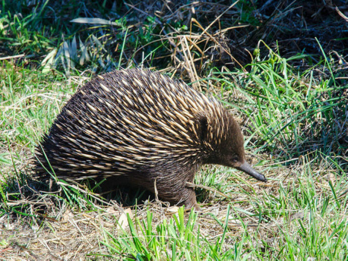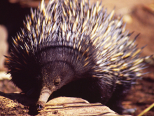 短吻针鼹(学名:Tachyglossus aculeatus): 又称刺食蚁兽,身上即有毛又有棘刺,喙长,以白蚁等为食,擅长挖掘。针鼹虽为卵生的单孔类,却也有育儿袋,卵直接产到育儿袋中孵化,而孵化后幼兽继续在袋中生活一段时间。