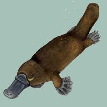 单孔目鸭嘴兽科,是现今生存于地球上的最原始的哺乳动物,具有一套接近于爬行动物和不同于高等哺乳动物的特征。主要表面在:嘴无肉质唇,呈扁平状,似鸭子的嘴,革质。卵生,产具壳的多黄卵,雌性具孵卵行为。不具乳头,乳腺为一种特化的汗腺。体表被细密而柔软的毛。体温基本恒定,但体温调节机制尚不完善,一般控制在24-45℃。四肢短而粗,趾间具蹼,并具尖锐的爪,适于掘土,尾扁平。每年10-12天。分布于澳大利亚东南部和塔斯马尼亚等地。