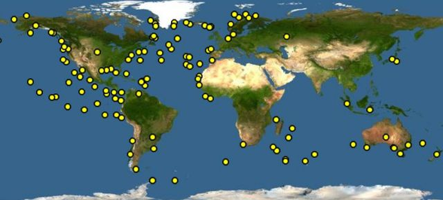 分布于阿尔巴尼亚、阿尔及利亚、安哥拉、南极洲、安提瓜和巴布达、阿根廷、澳大利亚、巴哈马、孟加拉国、巴巴多斯、比利时、伯利兹、贝宁、巴西、文莱达鲁萨兰国、喀麦隆、加拿大、佛得角、智利、中国、哥伦比亚、科摩罗、哥斯达黎加、克罗地亚、塞浦路斯、丹麦、吉布提、多米尼克、多明尼加共和国、厄瓜多尔、埃及、萨尔瓦多、赤道几内亚、福克兰群岛、法罗群岛、斐济、法国、加蓬、冈比亚、加纳、直布罗陀、希腊、格陵兰、格林纳达、危地马拉、几内亚、几内亚比绍、圭亚那、海地、洪都拉斯、冰岛、印度、印度尼西亚、伊朗伊斯兰共和国、爱尔兰、以色列、意大利、牙买加、日本、肯尼亚、基里巴斯、朝鲜人民民主共和国、大韩民国、黎巴嫩、利比里亚、利比亚、马达加斯加、马来西亚、马尔代夫、马耳他、马绍尔群岛、毛里塔尼亚、毛里求斯、墨西哥、密克罗尼西亚联邦、摩纳哥、摩洛哥、莫桑比克、纳米比亚、瑙鲁、荷兰、荷属安的列斯、新西兰、尼加拉瓜、尼日利亚、纽埃、挪威、阿曼、巴基斯坦、帕劳、巴拿马、巴布亚新几内亚、秘鲁、菲律宾、葡萄牙、俄罗斯联邦、圣赫勒拿、阿森松岛、特里斯坦 - 达库尼亚群岛、圣基茨和尼维斯、圣卢西亚、圣文森特和格林纳丁斯、萨摩亚、圣多美和普林西比、塞内加尔、塞舌尔、塞拉利昂、新加坡、斯洛文尼亚、所罗门群岛、索马里、南非、西班牙、斯里兰卡、苏里南、阿拉伯叙利亚共和国、坦桑尼亚、联合共和国、泰国、东帝汶、多哥、汤加、特立尼达和多巴哥、突尼斯、土耳其、图瓦卢、英国、美国、乌拉圭、瓦努阿图、委内瑞拉、玻利瓦尔共和国、越南、也门、中国。