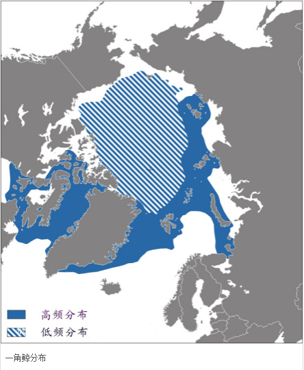 传统观点认为一角鲸是深水鲸种,实际上它们在靠近北极浮冰带的海洋各层深度觅食。
