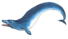 它们的骨骼也提醒人们其陆地动物的祖先:一双小脚。在埃及的沙漠,有个鲸类骨骸自沙中蚀出的奇怪地方——鲸之谷,其是个浅滩的化石遗迹。在三千六百万年前,鲸类常游近这里岸边。械齿鲸就是此地所发现的两种鲸类之一。械齿鲸的骨骸显示它的确拥有很长的身体。事实上,当它首次被发现时,还被误认为是某种海蛇(所以它才会有个意指「蜥蜴王」的英文名字)。虽然埃及的化石并不常得到良好的保存,但在一个械齿鲸化石的胸腔找到一团鱼化石,其中还包括几种不同的鱼类骨骸,以及一只五十厘米长的鲨鱼是十分少见的。