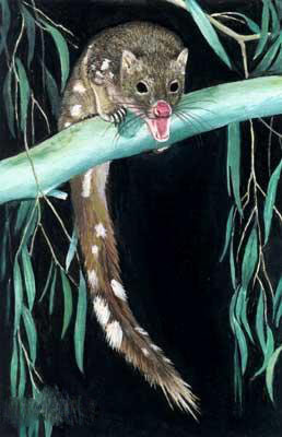 斑袋鼬个子虽然并不大,长40-75厘米,重2-3公斤,却是澳大利亚本土现存最大的食肉有袋类。